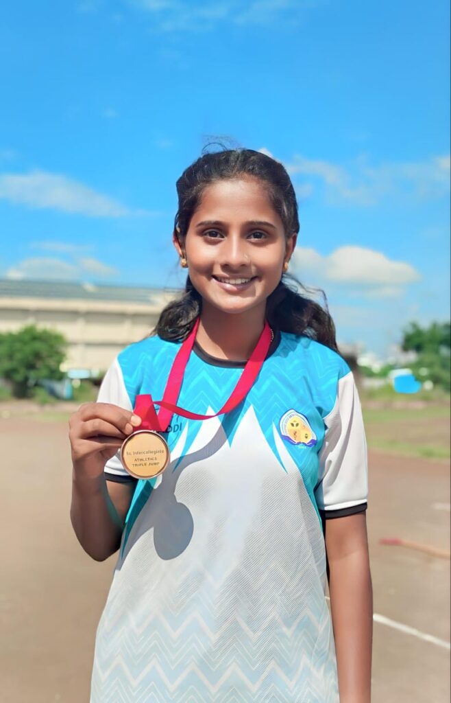 ट्रिपल जंप क्रीडा प्रकारात तनुजा संकपाळ या विद्यार्थिनीने रौप्य पदक मिळवले. सोबतच अमरावती येथे होणाऱ्या वेस्ट झोन इंटर युनिव्हर्सिटी कबड्डी स्पर्धेसाठी दिपाली धनवडे या विद्यार्थिनीची विद्यापीठ संघात निवड झाली आहे. तर हॉलीबॉल कोचिंग कॅम्प साठी सानिया पाटील या विद्यार्थिनीची निवड झाली आहे. या सर्व विजेत्यांनी आपल्या मेहनतीच्या आणि महाविद्यालयातील शिक्षकांच्या मार्गदर्शनाच्या जोरावर इंटर युनिव्हर्सिटी क्रीडा स्पर्धेत आपले स्थान निश्चित केले आहे.